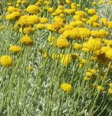 | Santolina chamaecyparissus | Silbrigblättriges Heiligenkraut | Kleistrauch, 35 cm, gelb, an sonniger Lage. Rückschnitt nach der Blüte. | 8.00 |  | Yes |
