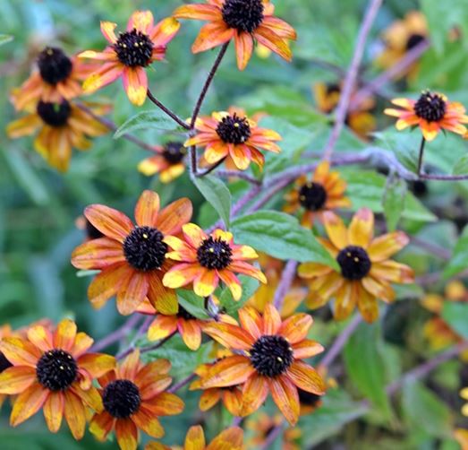 | Rudbeckia triloba 'Prairie Glow' | Oktober-Sonnenhut | 7-11, Zunächst weitgehend gelb blühen die Zungenblüten in einem spektakulären Farbenspiel von Kupfer, Bronze und Orangerot ab, 80 cm | 5.50 |  | Yes |