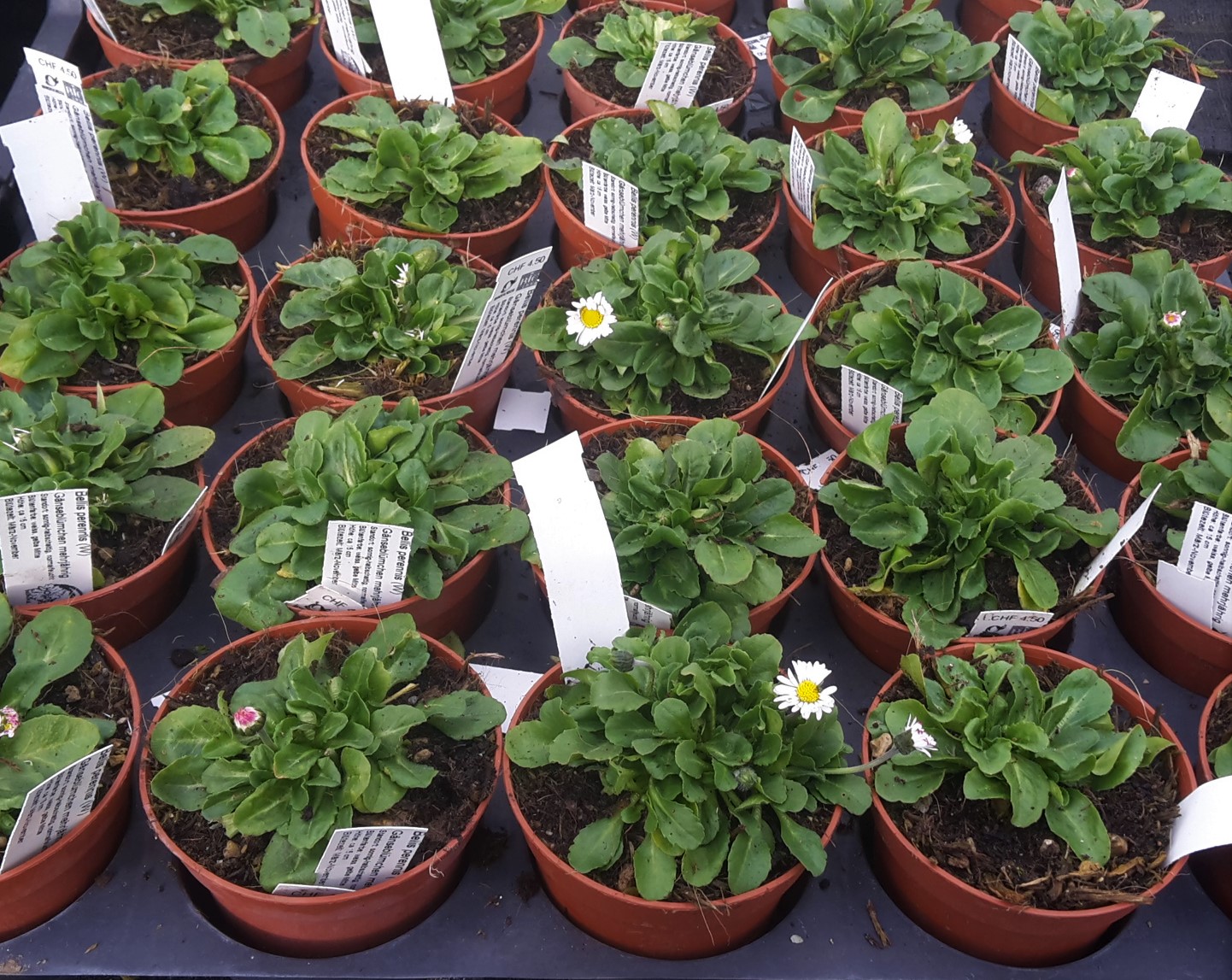 | | Bellis perennis weiss | Gänseblümchen weiss | Yes | | 10 | 4.50 CHF | weiss, gelbe Mitte | 03-10 | | Bienenweide | Yes | Yes | | | | | Yes | 15 cm |