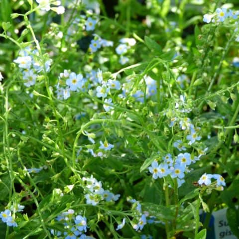 | | Myosotis palustris | Sumpf-Vergissmeinnicht | | | 10 | 6.50 CHF | hellblau | Mai-September | Teichrand, Sumpf, Wasserrand, Wasserstand : 0-5 cm. Versamt gut | | Yes | Yes | | | Yes | | Yes | 20-30 cm |