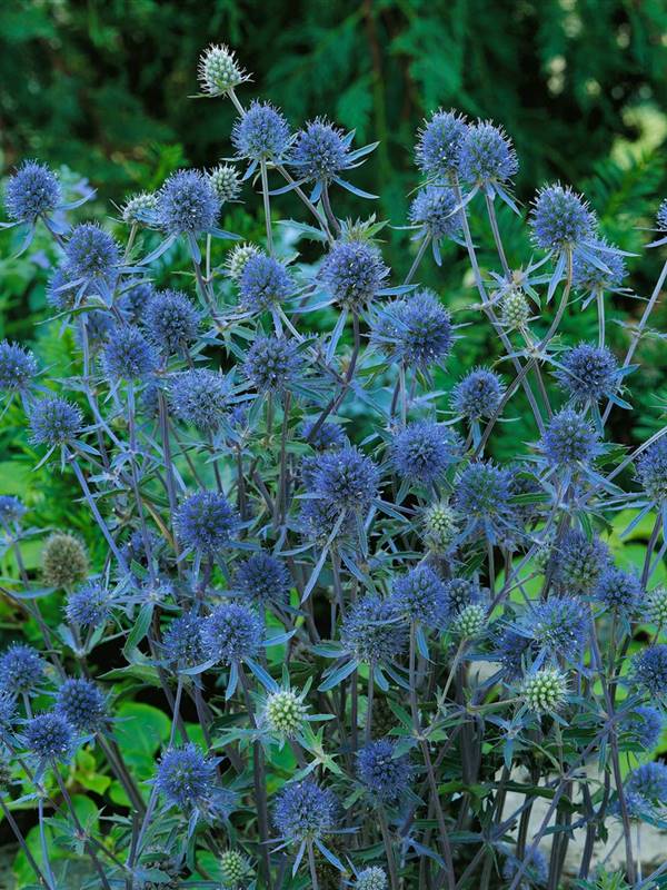 |  | Flachblättriger Mannstreu | Eryngium planum 'BlueTwitter' | Yes | 8.50 CHF | blau-violett | Juni-September | Kleinblumige, schöne Schnitt- und Trockenblume. Hervorragende Bienenweide. Heimat: Südosteuropa und Vorderasien | | Yes | | | Yes | | Yes |