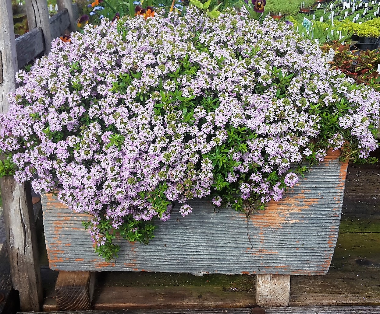 | | Orangenthymian | Thymus vulgaris var. fragrantissimus | Yes | 8.50 CHF | hellrosa | 06-09 | Heilwirkung bei allem Thymian ähnlich. Küchengewürz, Aroma sehr fruchtig in Richtung Orange. Passt sehr gut zu Süssspeisen oder zu Geflügel und Fleisch. Bei grosser Kälte etwas abdecken. | | Yes | | | Yes | | Yes |