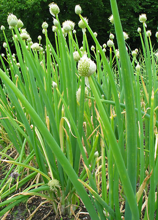 | | Knoblauch, Schnitt- | Allium tuberosum | Yes | 5.50 CHF | weiis-hell-lila | 07-09 | Aromatischer Geschmack zwischen Knoblauch und Schnittlauch. Kann laufend geschnitten werden, kann auch für Wintertreiberei im Gewächshaus genutzt werden. Mehrjährige Pflanze. Blüte duftend | | Yes | Yes | | | Yes | Yes |